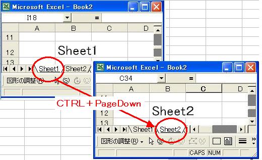 【ショートカットキー】 Ctrl + PageUp