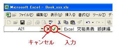 【マウスでは】・・・数式バー 左側の ”入力”ボタンで確定。