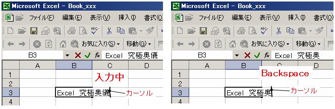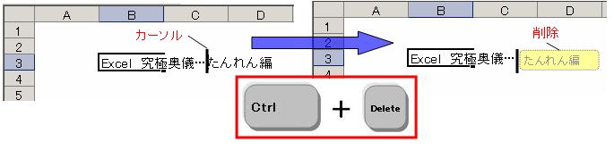 【使い方】・・・セル内で、カーソルの〔右〕の文字を削除