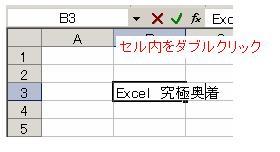 セル内を ダブルクリックして、編集モードに切り替える。