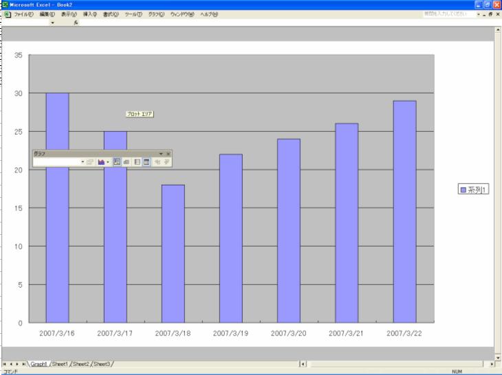 【知っておく事】 データ範囲のシート (この場合 Sheet1)の右側へGraphシートを挿入する。