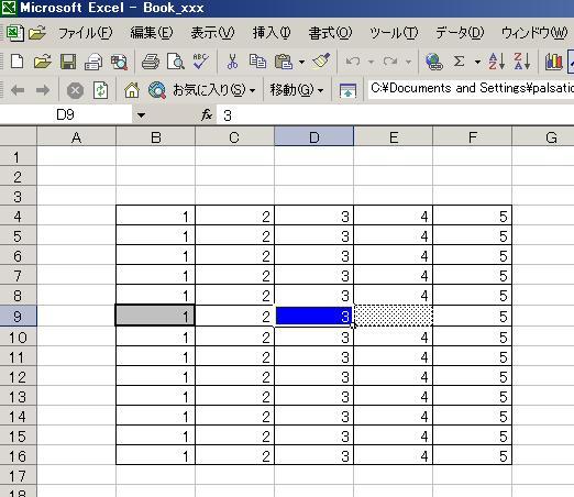 E9が空白の為、その左側 D9まで移動