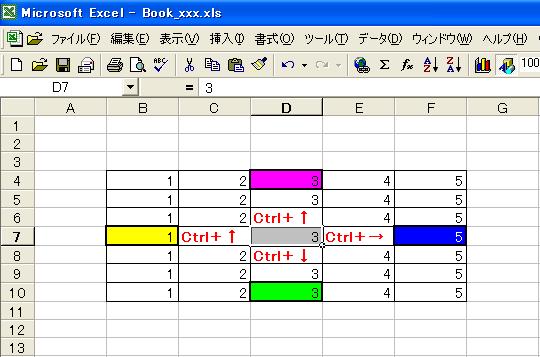 基本移動と言うのは 基準のセルから 【上】【下】【右】【左】と 移動するやり方です。