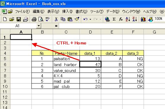 データの上端へ移動…CTRL + ↑
